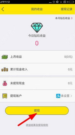 2、在这里有一个提现,就是箭头所指的位置,点击进入。
