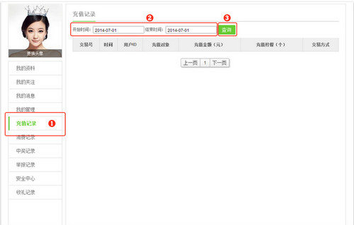 进入个人中心,左边功能栏中有对于的充值记录与消费记录查询功能。即可看到你的充值记录。