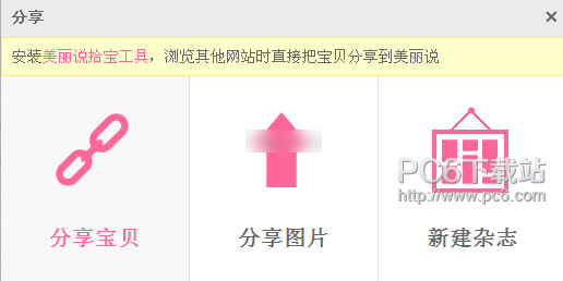 ps:以上就是pc6小编带来的美丽说怎么分享淘宝宝贝,美丽说能分享淘宝的宝贝,希望能帮助你。