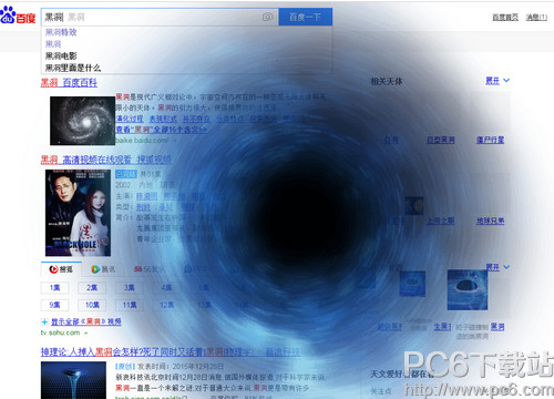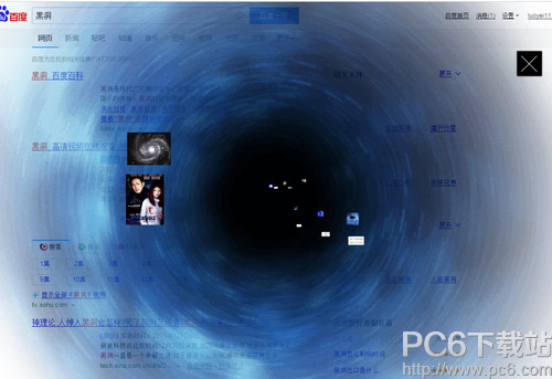 1.在百度输入“黑洞”,然后一个巨大的黑洞占据了屏幕,把所有的东西都吸走!