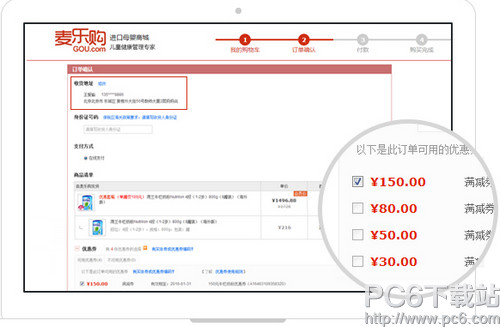 4. 填写购物人信息,收货信息,使用优惠券等。