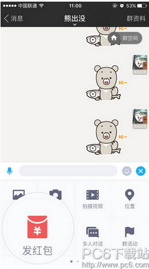 (1)在群聊天界面点击输入框右侧的“+”按钮