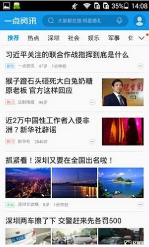 1、打开一点资讯客户端,进入到一点资讯主界面以后,可以看到当天发生的一些实时新闻,找到你想要分享的新闻然后点击进入