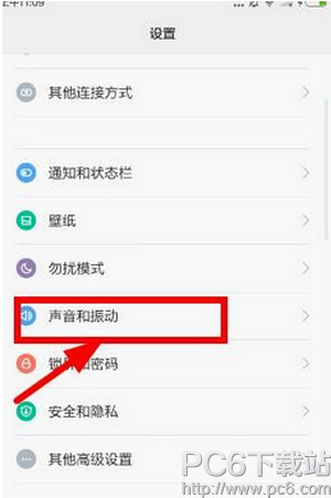 1、打开手机设置界面,在这里选择声音与振动按钮