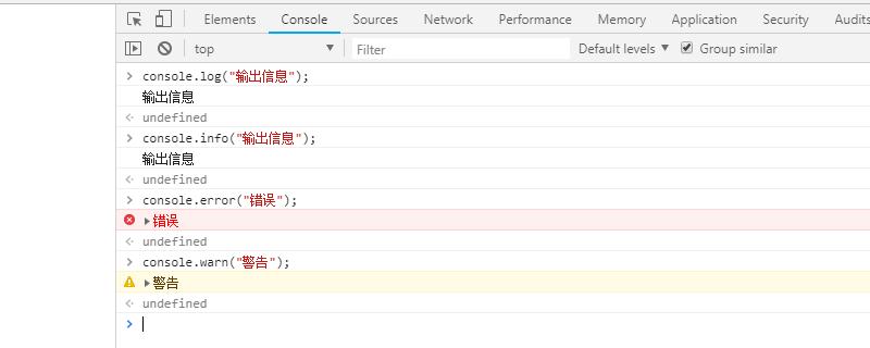 在输出信息时,会在最前面加一个红色的叉,表示出错,同时会显示错误发生的堆栈。