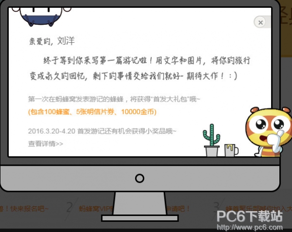 3.预约游记,每篇预约游记完成游记的华丽转变,奖励100蜂蜜。