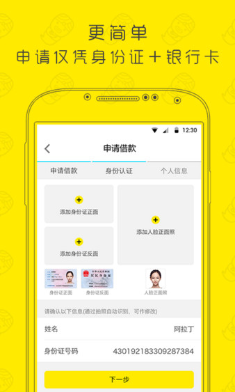 1.仅凭身份证和银行卡,3分钟申请、极速到账