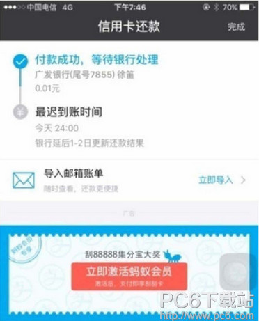每使用一次支付宝支付,都能获得一次刮奖机会(每天三次封顶),最高可获得88888个集分宝(100集分宝=1元,可用于淘宝购物)。