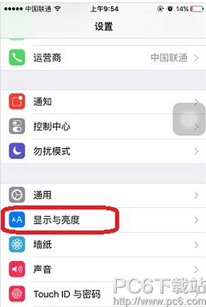 1.打开设置,下拉点击“显示与亮度”,如图: