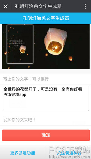 孔明灯图片上的文字怎么制作?孔明灯图片上的文字制作教程?时下很多朋友在朋友圈发放孔明灯的照片,吸引了一波点赞党,而且文字优美,照片漂亮,但是很多朋友不知道这是怎么制作的,不知道孔明灯上的文字制作方法,下面pc6小编教大家孔明灯图片上的文字怎么制作?孔明灯图片上的文字制作教程?