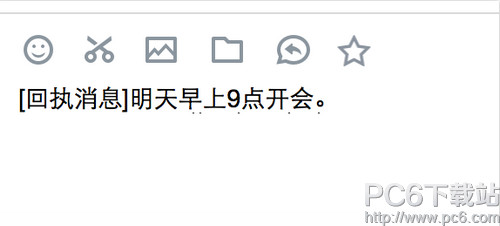 点击会话输入框上面的回执消息图标,输入框中出现[回执消息],然后输入想要发送的消息。回执消息支持文字和表情。如下图: