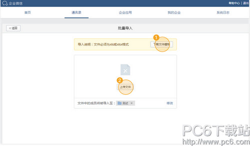 3、编辑完文件后,上传文件,点击导入即可批量将成员导入到通讯录中。成员通过验证手机或邮箱后即可登录。