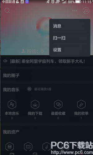 1.进入阿里星球后,找到右上角音乐符号旁边的“…”符号,点开后会有个弹窗选项,进入设置选项