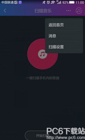 3.进入后点击开始扫描,你也可以设置扫描音乐的设置条件如音乐时长,文件大小和不扫描的文件夹或者扫描的文件夹