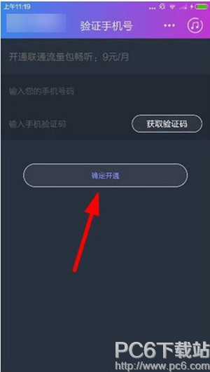 3、然后输入手机号码和验证码,点击“确定开通”。