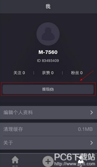 1、打开软件,进入你的个人中心界面,点击提现按钮