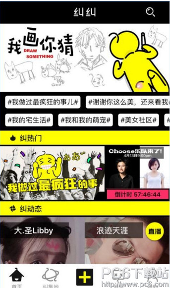 3、点击最下方中间的“+”号,用户即可快速发表图文,同时还可以加入到直播的行列中,让你可以根据任何话题和人pk,针锋相对,碰撞观点,演绎属于你自己的奇葩说;也可以和小伙伴组成cp,秀恩爱秀默契,成为纠纠直播的小s和蔡康有;当然,你还可以独自发起话题,晒宠物,炫技能,分享生活,寻找和你志同道合的伙伴们。