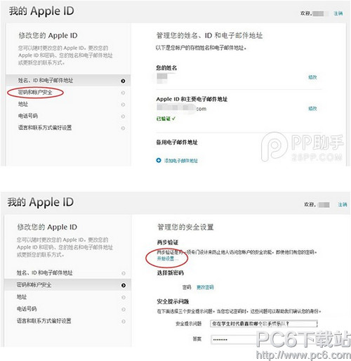 3. 点击左侧的“密码和账户安全”选项,并回答此前设置的安全提示问题,开始两步验证的设置。