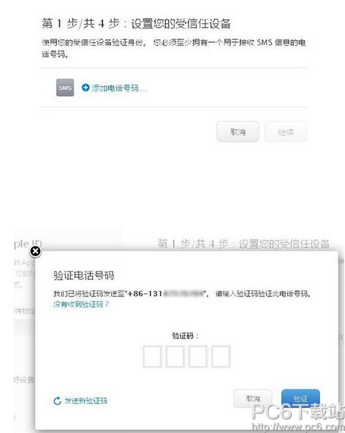 5. 添加手机号码之后,在弹出的验证框中输入收到的短信验证码。