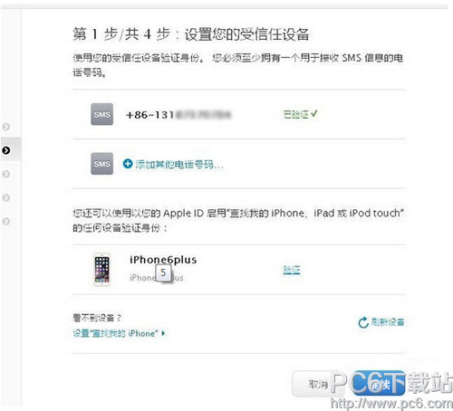 6. 手机号码验证完毕之后,我们需要验证自己的苹果设备,锋友 mrtyzq 验证的是自己的 iPhone6Plus,这一步,我们仍然需要输入验证码。