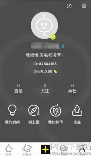 5、进入到我的页面,用户可以查看我的直播及关注的用户,并且还能了解我的纠币及收益。
