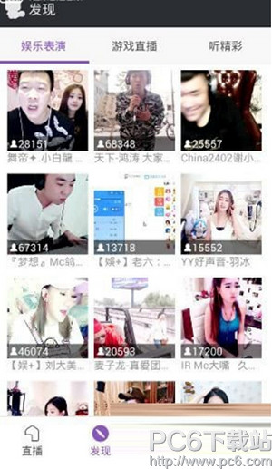2、在发现界面,为你进行了娱乐表演,游戏还在不,听精彩等分类的哟