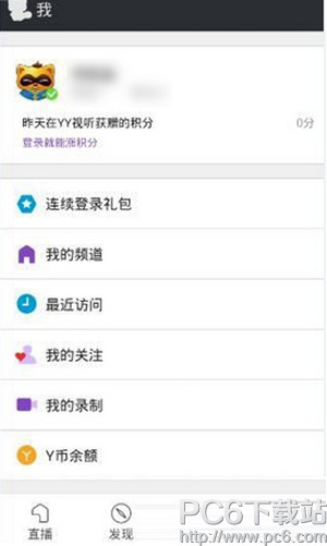 4、在我的个人界面,可以查看你的登录礼包,你的频道,你的关注,你的录制,y币余额。