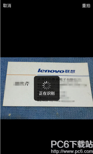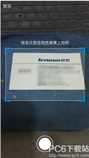 三、接下来我们就按照提示来将名片放入蓝色背景状态下进行拍照,随后系统会自动识别,如图所示。