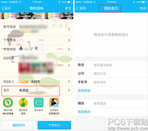 PC6小编点评:手机QQ推出该功能,是将原本用于娱乐沟通、虚拟交友的社交软件,逐渐转变为更加专业化,商业化的工具性软件。有了这项功能,朋友同事间有QQ即可看名片,既方便又实用。还在等什么?快来试试该功能,添加你的名片吧!
