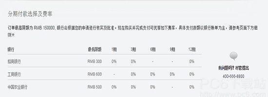按照苹果官网给出的信息,现在共有三家银行的信用卡支持最高 12 期分期付款、免息且免手续费,分别为招商银行、中国工商银行和中国农业银行,各自最低限额和分期期数有所不同,但订单最高限额为 150000 元人民币。