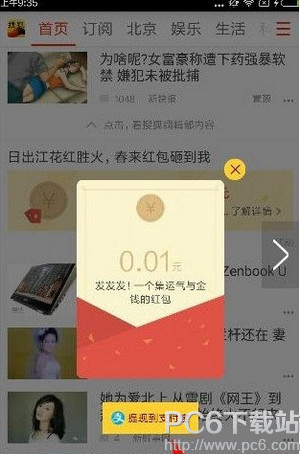 1、用户打开搜狐新闻,抢到红包后,点击“提现到支付宝”