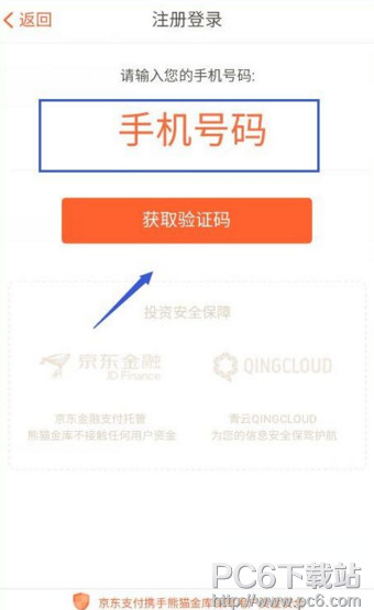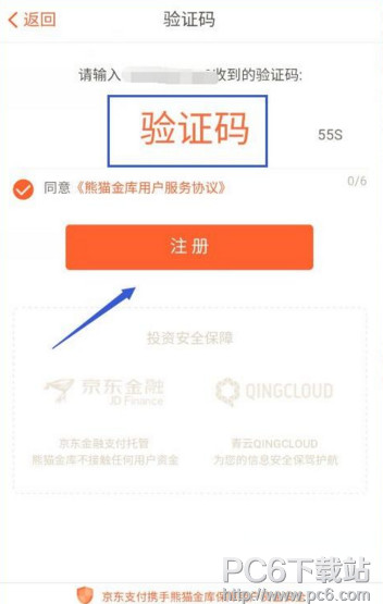3、然后输入手机短信验证码,点击注册即可注册成功即可快速获得8888元熊猫冿贴。