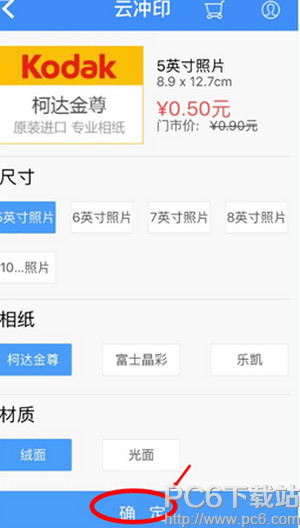 3、选择“照片冲印”,选择合适的尺寸,点击“确定”。