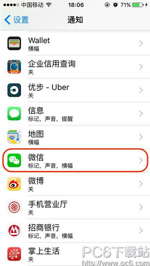 2.进入通知栏里面,在下面的应用中找到微信,点进去。
