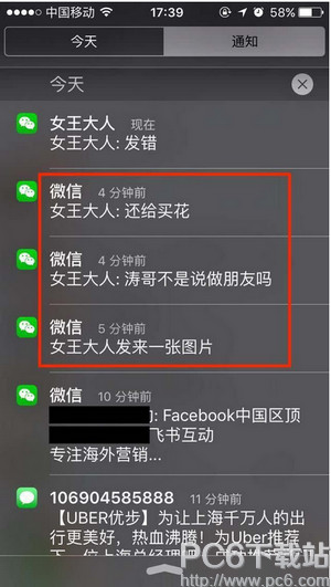5.接下来,如果有朋友跟你私聊或者在微信群中撤销了一条信息的话,你再也不用担心你会错过了!下拉打开通知栏,你就会惊喜的看到他/她/它说了什么!