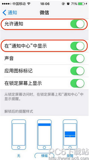 4.将下面可选项中的“在‘通知中心’中显示”,也要点开!点开!点开!这就样,就大功告成了。