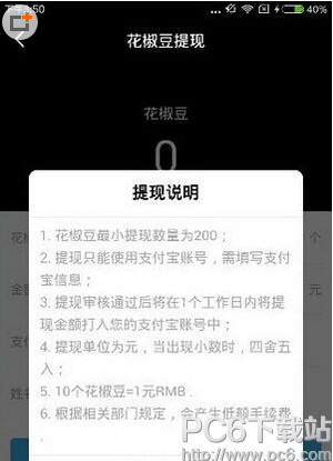 花椒直播提现说明: