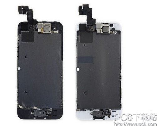 4.将屏幕与后盖分离。大家可以看到下图中iPhone 5s(左)和 iPhone SE(右)的屏幕对比,找不出什么不同的地方。当然一切不止表面看到的这么简单。经过简单的测试我们发现,这简直就是直接把 iPhone 5s 的屏幕用到 iPhone SE 上——布局、连接器和功能一模一样。如果你要自己动手维修 iPhone SE,那教程就有现成的,直接看 iPhone 5s 的就可以了。