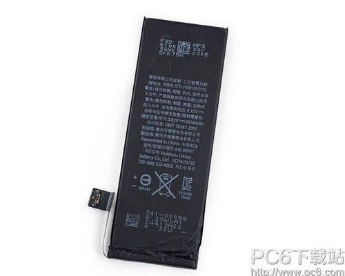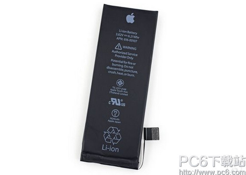 5.取出电池。iPhone SE 锂离子电池规格为 3.82 V、6.21 Whr,容量 1624 mAh。iPhone 5s 的电池是1560mAh,容量增加了不少。虽然比 iPhone 6s 的 1715mAh 小,但是根据苹果的介绍,iPhone SE 可以待机 10 天,通话 14 个小时,视频播放 13 个小时。我们可以看到iPhone SE 的电池连接器和 iPhone 5s 的是不一样的。