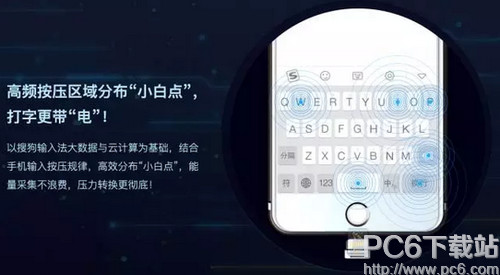 搜狗膜膜打手机充电膜通过高系数压电纳米材料采集来自手机按摩、按压等产生的能量。同时利用混合电力放大器,完成电力传输任务,内置的混合放大元件,将小压力转变成大电力。而且用户在使用搜狗输入法时,搜狗膜膜打的能量转换达到最大
