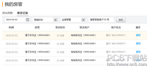 (2)房管可以在禁言记录中查看自己有房管身份的主播直播间内被封禁的用户并解禁。