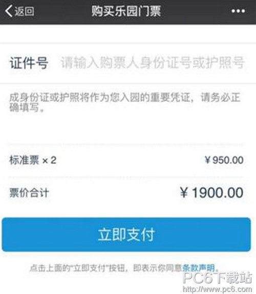 选择入园日期门票种类和数量,填写有效证件号并付款即可。