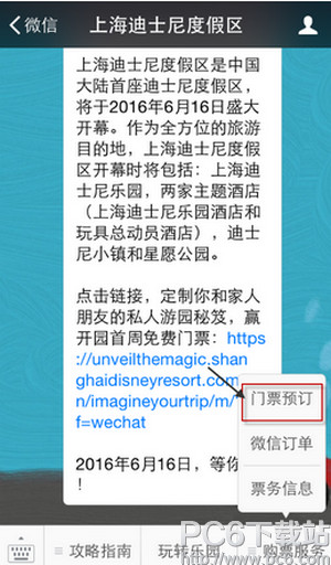 上海迪士尼门票微信购买方法: