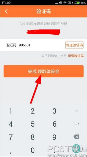2、按照步骤用手机号和验证码注册成功后,点击“完成,领取体验金”就可以领取成功了;
