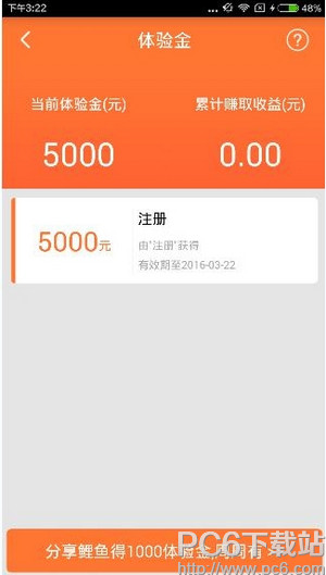 鲤鱼理财为新注册的用户提供了5000元的理财体验金,体验金产生的收益用户可以直接提现的。