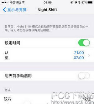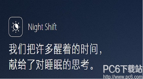 night shift功能详细介绍:多项研究显示,在夜间接触明亮的蓝光可能会扰乱人体的生理节奏,使人们难以入眠。而在早晨,它又会将显示屏恢复为常规设置。