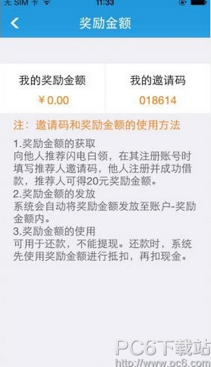 向他人推荐闪电白领,在其注册帐号时填写推荐人邀请码,他人注册并成功借款,推荐人可得20元奖励金额。