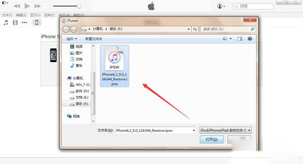 4、iTunes会弹出对话窗--请选择已经下载好的固件--点击更新--等待iTunes运行。
