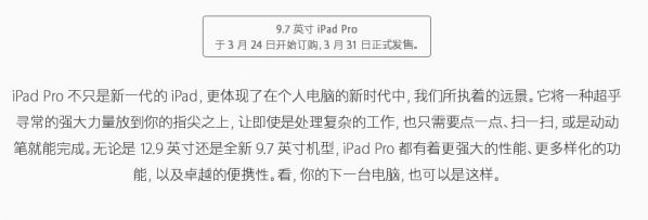 那么新款iPad Pro什么时候上市?新款iPad Pro上市时间是什么时候?由下面的官方图片可以知道,3月24日即可开始订购,3月31日正式上市发售。
