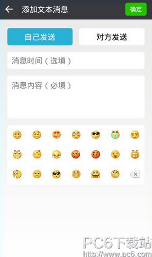 4、以文本为例说明下,选择自己发送还是对方发送,然后输入消息时间和内容点击发送即可生成成功。